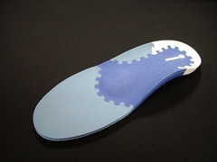 - Die Einlage, die speziell auf die immer wiederkehrenden Belastungs- und Bewegungsmuster in der Lande-, Stütz- und Abstoßphase des Laufens abgestimmt ist